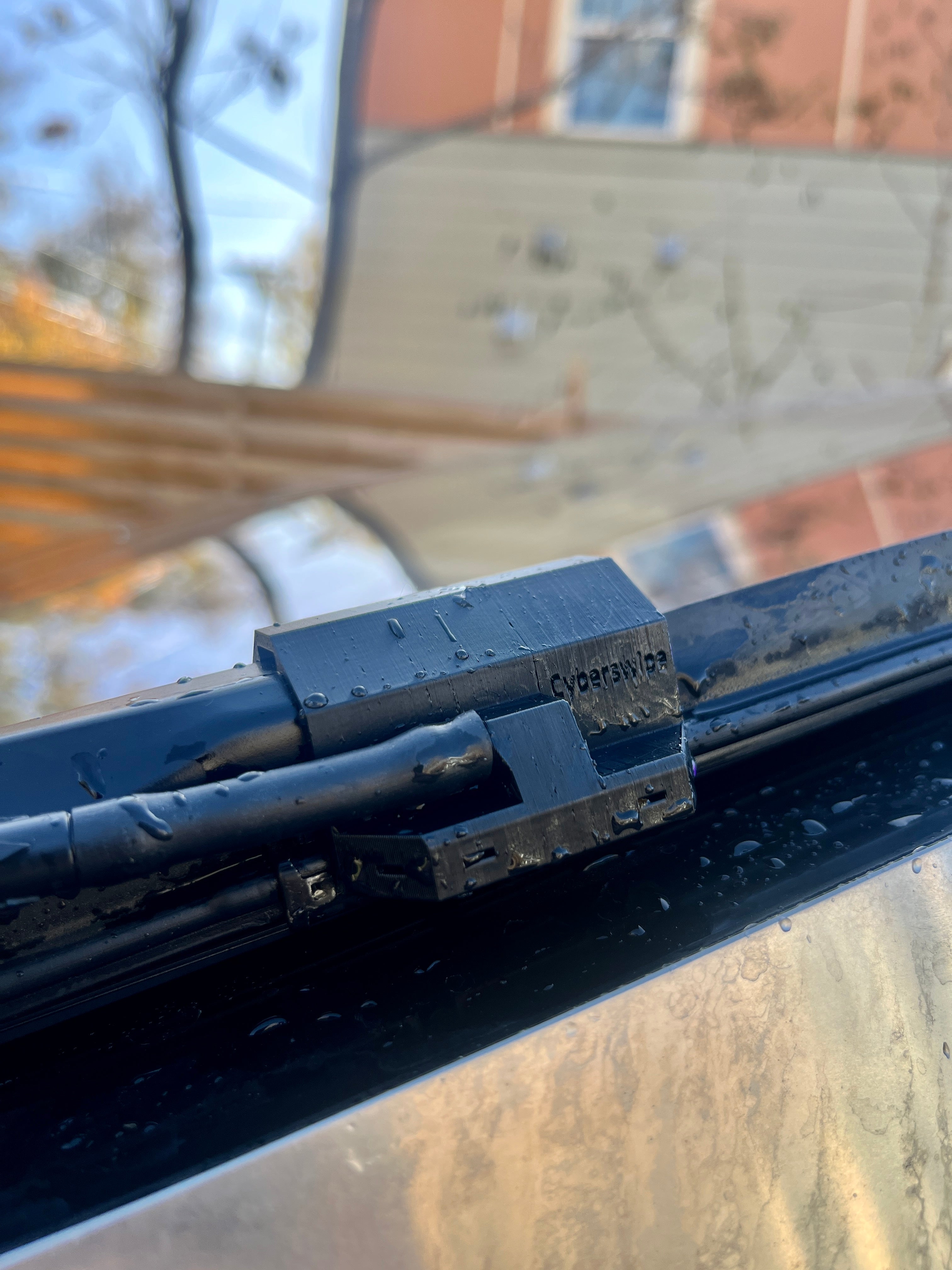 An adapter that re-locates the stock spray nozzles to the center of the arm improving cleaning coverage while eliminating streaking and blow-back while driving